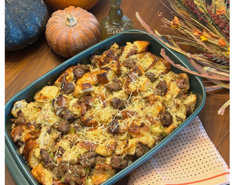 Spice up your traditional stuffing recipe with our ground breakfast sausage 🔥 - made with all natural pork, chile flake, maple syrup, and fresh herbs!